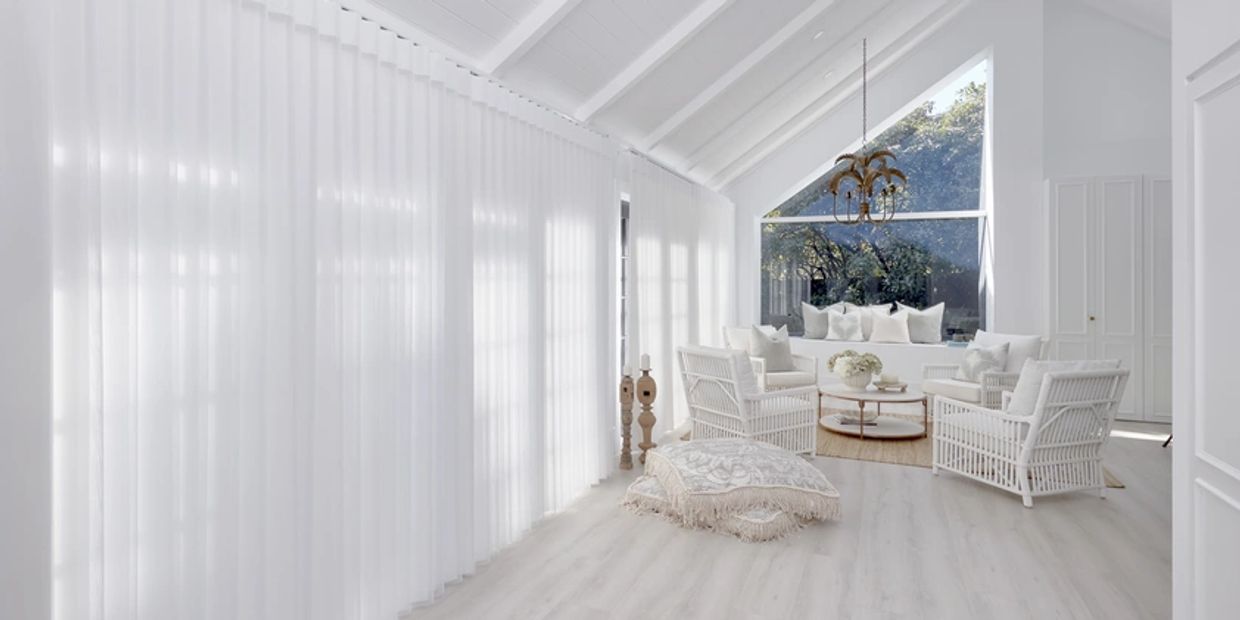 Luxaflex LumiShade Window Coverings offer a contemporary take on a classic style, blending the versatility of vertical blinds with the soft elegance of premium fabric vanes. Designed specifically for the Australian climate, LumiShade blinds are a stylish and practical solution that balances light control, durability, and child safety—thanks to its cordless design with no joining bottom chains. Easily tilt the vanes using a sleek traversing wand or chain/cord control to filter light just the way you like. Whether stacked to one side for a one-way sliding door or centre opened like a curtain, LumiShade brings refined functionality and timeless appeal to any space.